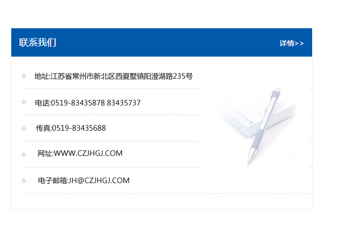 地址:常州市新北區友邦商務大廈1幢16、17層  電話:0519-85101652  傳真:0519-85112595  郵編:213022  網址:www_cz-jiayue_cn.syresidents.com  郵箱:xiajifengaa@163.com